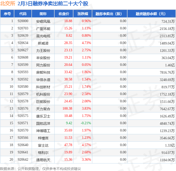 北交所融券净卖出前三分别为:None,前20具体见下表: