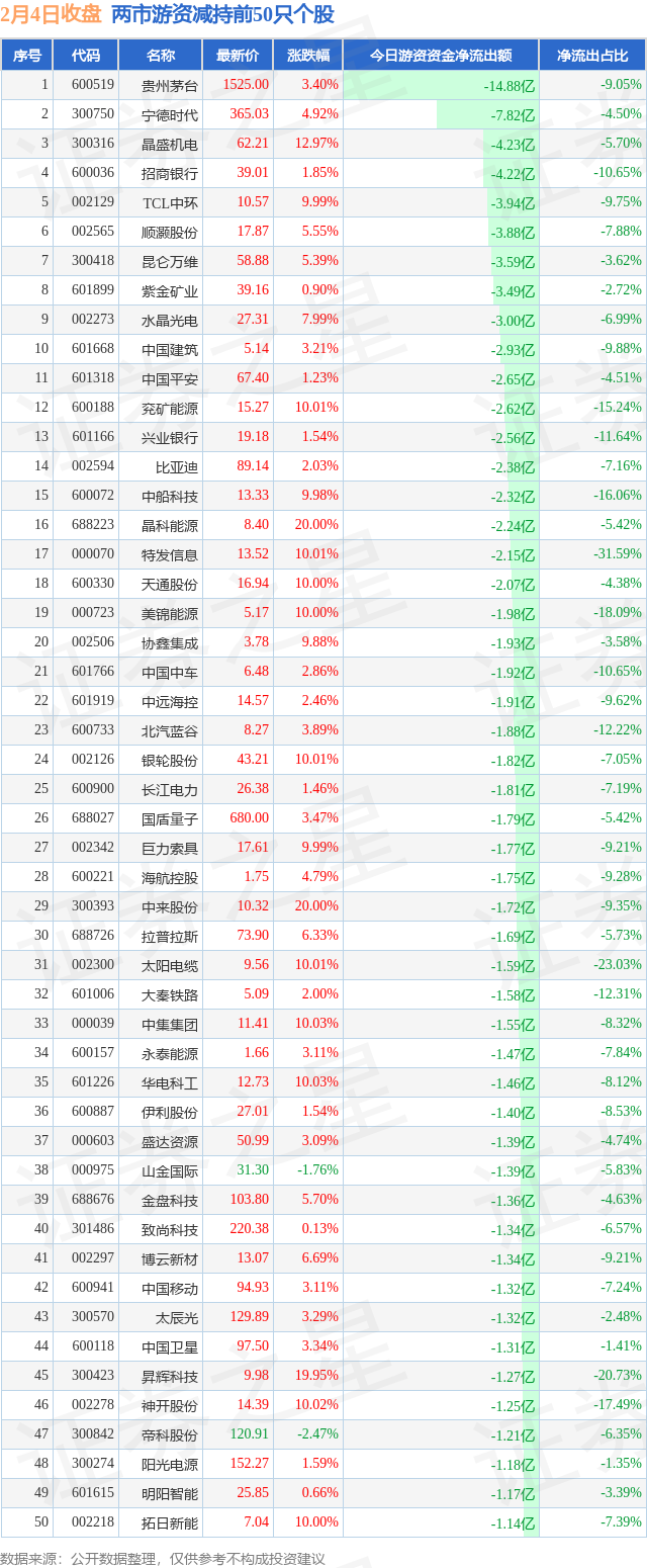 两市游资减持最多的前十只个股为: