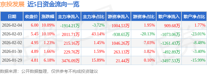 证券之星消息,京投发展2月4日涨停收盘,收盘价6.0元。该股于10点37分涨停,2次打开涨停,截止收盘封单资金为2126.17万元,占其流通市值0.48%。