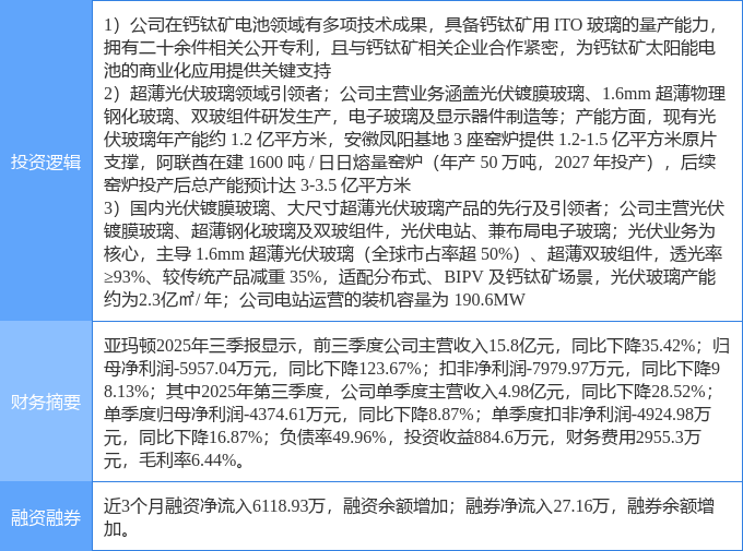 该股为钙钛矿电池,光伏,玻璃概念热股,当日钙钛矿电池概念上涨4.63%,光伏概念上涨3.44%,玻璃概念上涨3.39%。