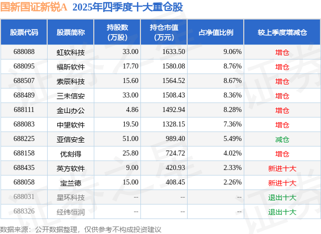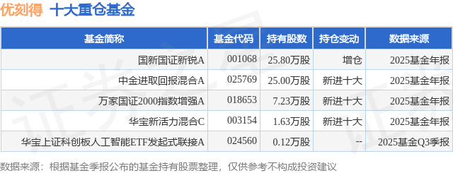 根据2025基金年报公募基金重仓股数据,重仓该股的公募基金共4家,其中持有数量最多的公募基金为国新国证基金的国新国证新锐A。国新国证新锐A目前规模为1.06亿元,最新净值1.821(2月3日),较上一交易日上涨2.82%,近一年上涨43.73%。该公募基金现任基金经理为张洪磊。张洪磊在任的基金产品包括:国新国证新利混合A,管理时间为2025年6月19日至今,期间收益率为12.85%。