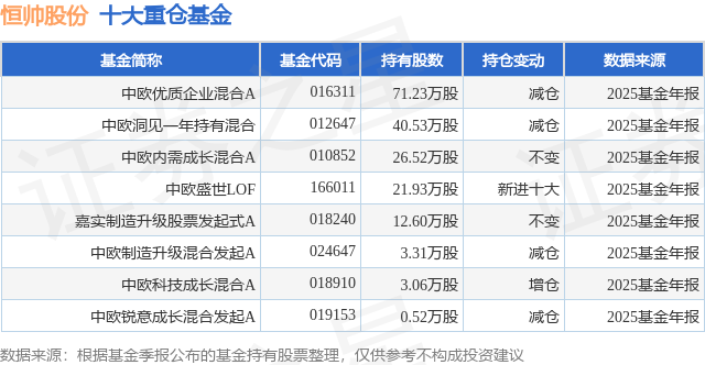重仓恒帅股份的公募基金请见下表: