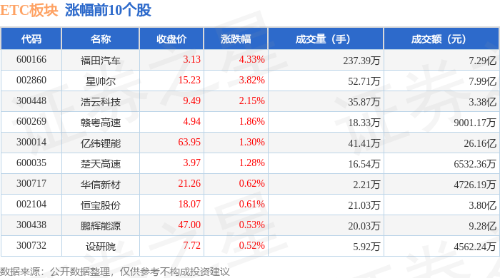 从资金流向上来看,当日ETC板块主力资金净流出10.77亿元,游资资金净流入4.51亿元,散户资金净流入6.26亿元。ETC板块个股资金流向见下表: