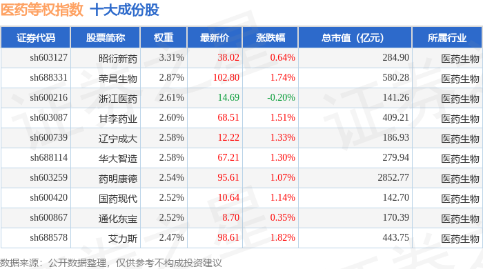 证券之星消息,2月4日,医药等权(000075)指数报收于7009.1点,涨1.12%,成交183.85亿元,换手率0.86%。当日该指数成份股中,上涨的有45家,益丰药房以4.96%的涨幅领涨,下跌的有4家,特宝生物以2.51%的跌幅领跌。