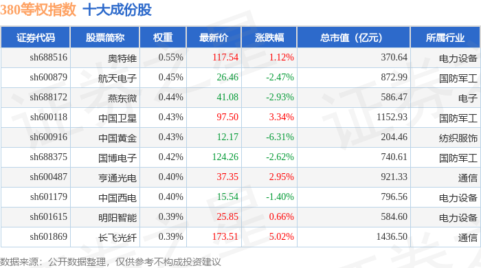 380等权(000115)指数十大成份股详情如下: