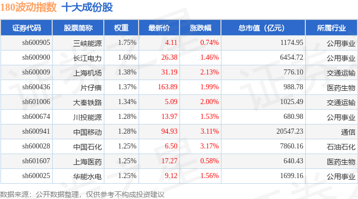 180波动(000129)指数十大成份股详情如下: