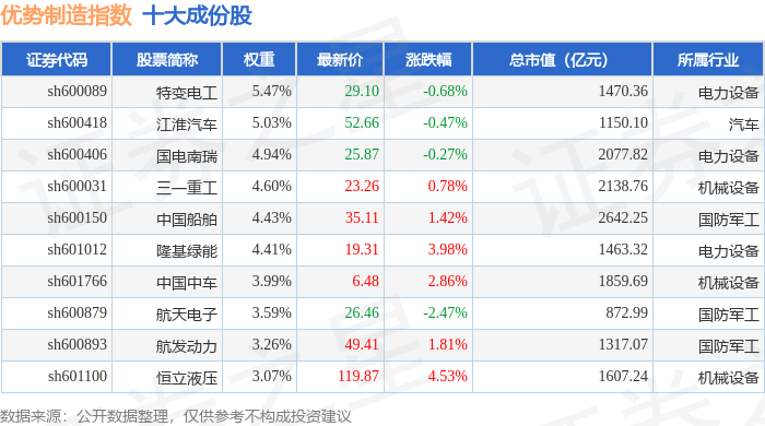 优势制造(000146)指数十大成份股详情如下: