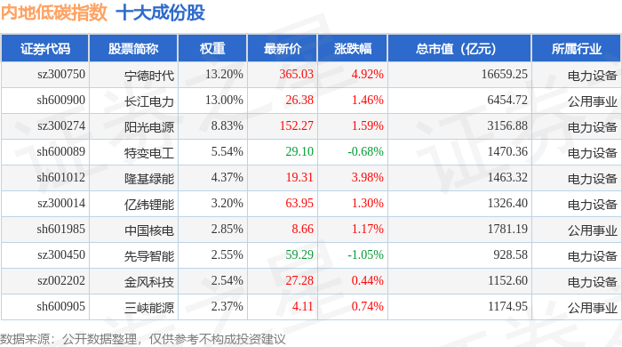 内地低碳(000977)指数十大成份股详情如下: