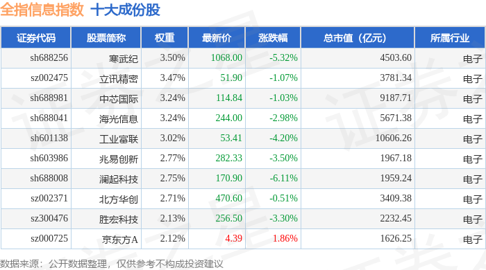 全指信息(000993)指数十大成份股详情如下: