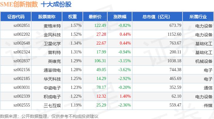 SME创新(399017)指数十大成份股详情如下: