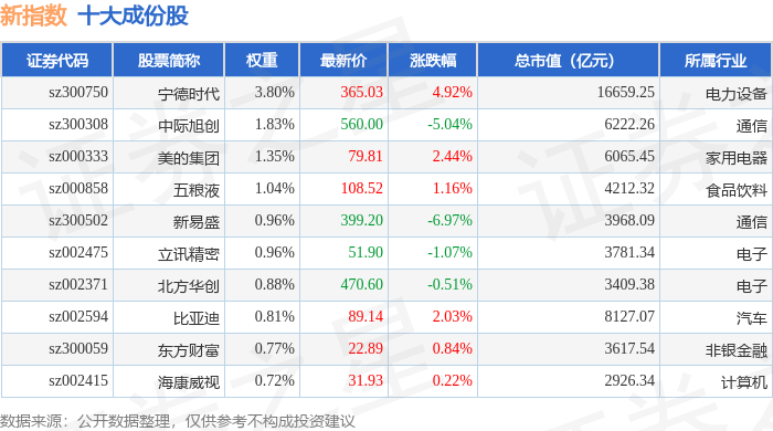 资金流向方面,新指数(399100)成份股当日主力资金净流出合计483.94亿元,游资资金净流入合计151.31亿元,散户资金净流入合计332.63亿元。成份股资金流向详情见下表: