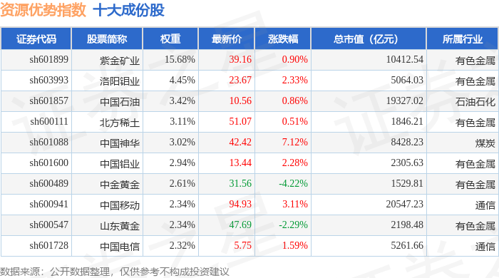 资金流向方面,资源优势(399319)指数成份股当日主力资金净流出合计42.11亿元,游资资金净流出合计2896.64万元,散户资金净流入合计42.4亿元。成份股资金流向详情见下表: