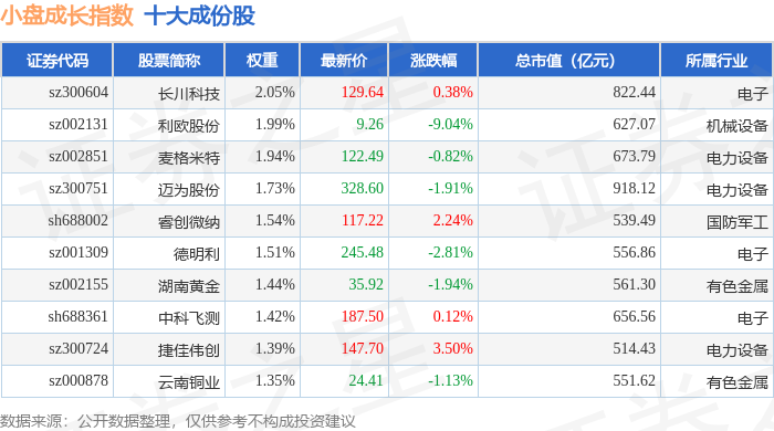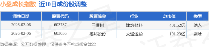 近10日内小盘成长(399376)指数成份股做了调整,新纳入了1只股票,剔除了1只股票。