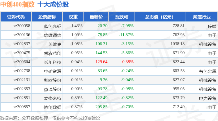 证券之星消息,2月4日,中创400(399624)指数报收于2813.14点,跌0.51%,成交3736.02亿元,换手率4.09%。当日该指数成份股中,上涨的有214家,银轮股份以10.01%的涨幅领涨,下跌的有181家,网宿科技以13.41%的跌幅领跌。