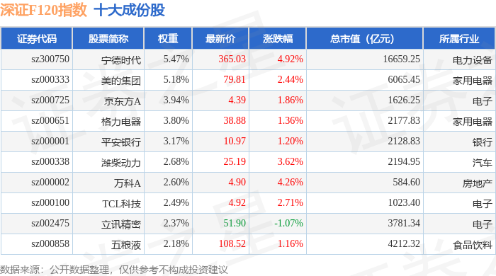 资金流向方面,深证F120(399702)指数成份股当日主力资金净流入合计19.11亿元,游资资金净流出合计7.85亿元,散户资金净流出合计11.26亿元。成份股资金流向详情见下表:
