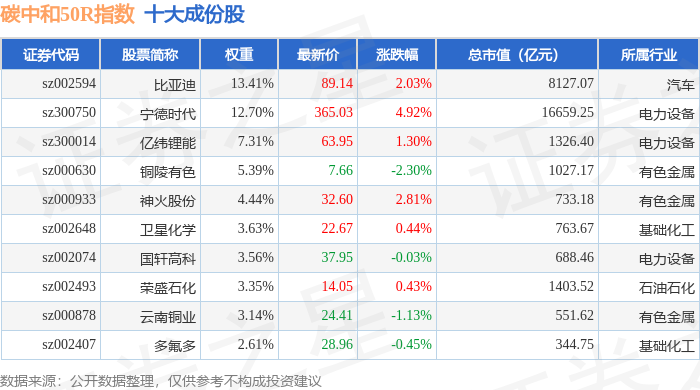 碳中和50R(480021)指数十大成份股详情如下: