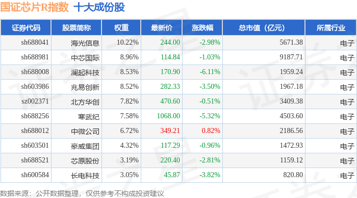 国证芯片R(480017)指数十大成份股详情如下: