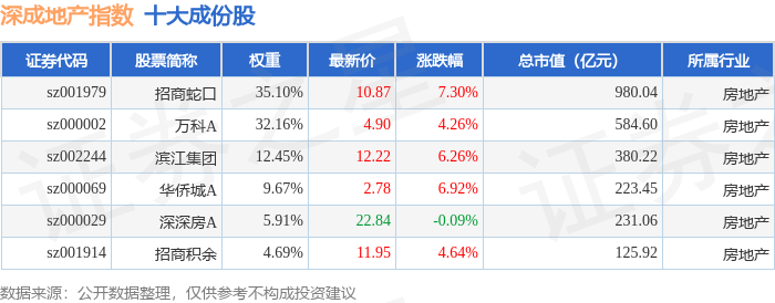 深成地产(971001)指数十大成份股详情如下: