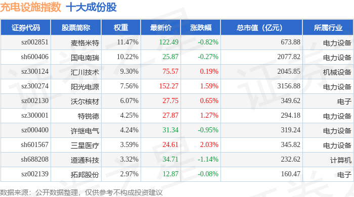 充电设施(980077)指数十大成份股详情如下: