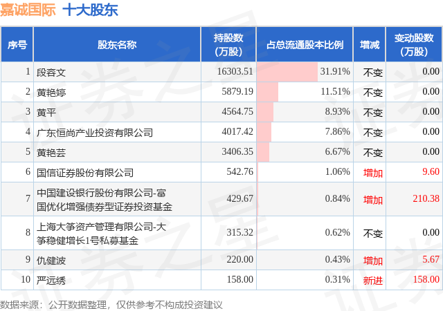 根据嘉诚国际2025年三季报公布的十大股东详情如下: