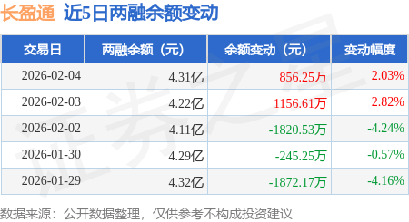 证券之星消息,2月4日,长盈通(688143)融资买入7452.09万元,融资偿还6609.74万元,融资净买入842.35万元,融资余额4.31亿元。