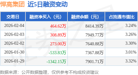 证券之星消息,2月4日,悍高集团(001221)融资买入3046.85万元,融资偿还2582.23万元,融资净买入464.62万元,融资余额8414.39万元,近3个交易日已连续净买入累计1046.51万元,近20个交易日中有12个交易日出现融资净买入。