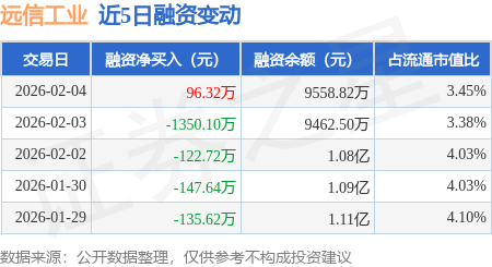 证券之星消息,2月4日,远信工业(301053)融资买入305.79万元,融资偿还209.47万元,融资净买入96.32万元,融资余额9558.82万元。