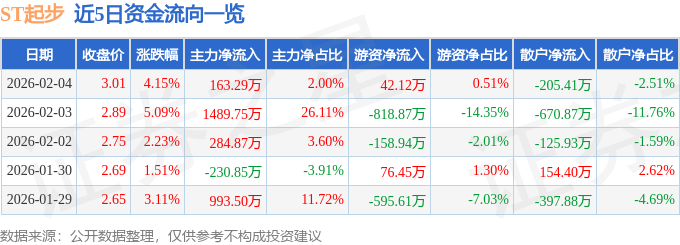 2月4日的资金流向数据方面,主力资金净流入163.29万元,占总成交额2.0%,游资资金净流入42.12万元,占总成交额0.51%,散户资金净流出205.41万元,占总成交额2.51%。
