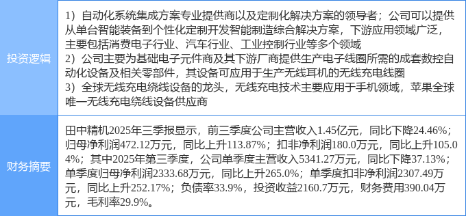 证券之星消息,田中精机2月5日涨停收盘,收盘价42.14元。该股于9点30分涨停,未打开涨停,截止收盘封单资金为7014.62万元,占其流通市值1.16%。