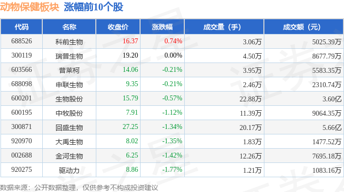 从资金流向上来看,当日动物保健板块主力资金净流出6456.55万元,游资资金净流入5488.62万元,散户资金净流入967.93万元。动物保健板块个股资金流向见下表: