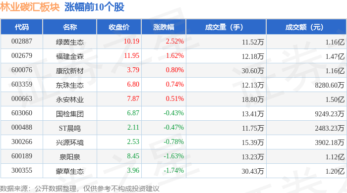 证券之星消息,2月5日林业碳汇板块较上一交易日下跌1.41%,岳阳林纸领跌。当日上证指数报收于4075.92,下跌0.64%。深证成指报收于13952.71,下跌1.44%。林业碳汇板块个股涨跌见下表: