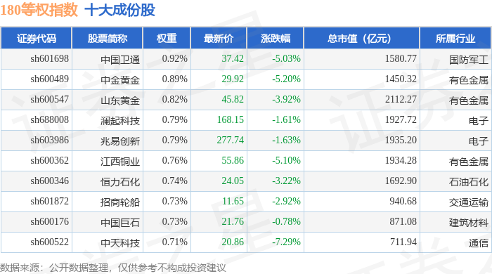 180等权(000051)指数十大成份股详情如下: