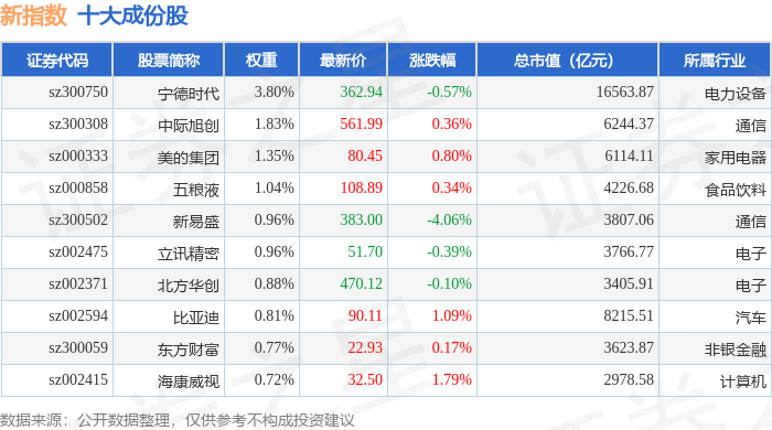 新指数(399100)十大成份股详情如下: