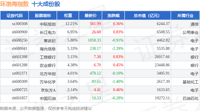 环渤海(399357)指数十大成份股详情如下: