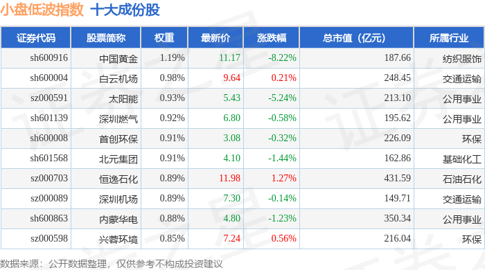 小盘低波(399408)指数十大成份股详情如下: