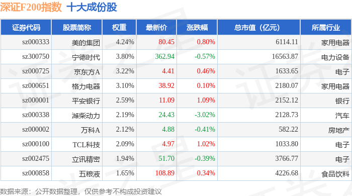 深证F200(399703)指数十大成份股详情如下: