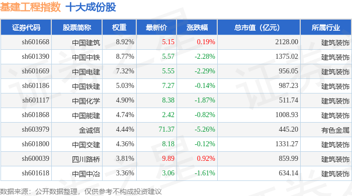 基建工程(399995)指数十大成份股详情如下: