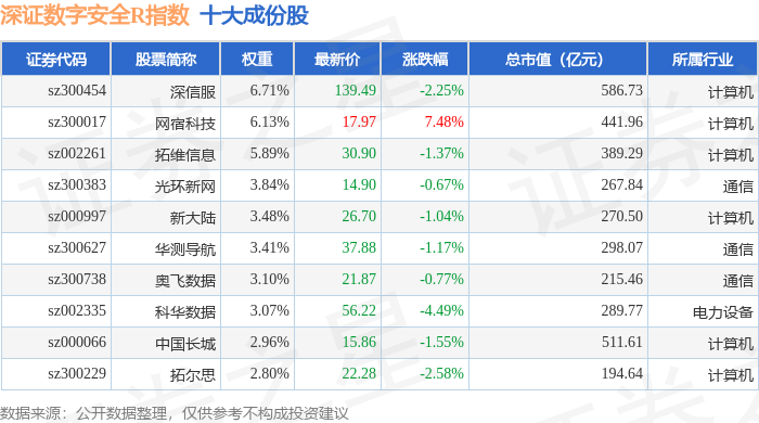 深证数字安全R(470052)指数十大成份股详情如下:
