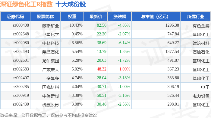 深证绿色化工R(470076)指数十大成份股详情如下: