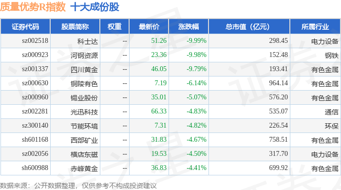 质量优势R(489017)指数十大成份股详情如下:
