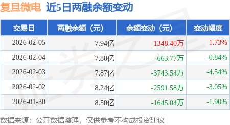 证券之星消息,2月5日,复旦微电(688385)融资买入4964.6万元,融资偿还3642.63万元,融资净买入1321.97万元,融资余额7.86亿元。