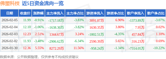 2月5日的资金流向数据方面,主力资金净流出1717.18万元,占总成交额3.83%,游资资金净流入3091.07万元,占总成交额6.9%,散户资金净流出1373.89万元,占总成交额3.07%。