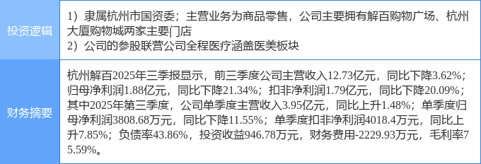 证券之星消息,杭州解百2月6日涨停收盘,收盘价10.78元。该股于9点25分涨停,1次打开涨停,截止收盘封单资金为7470.48万元,占其流通市值0.94%。