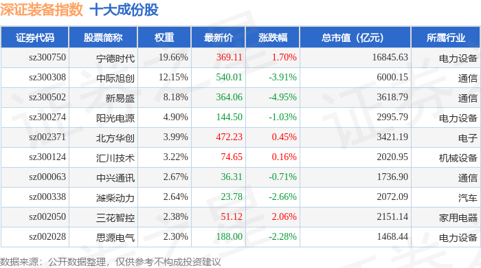 深证装备(399636)指数十大成份股详情如下: