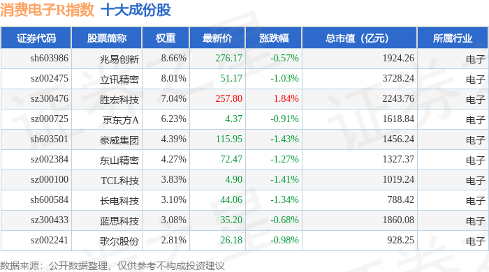 消费电子R(480030)指数十大成份股详情如下: