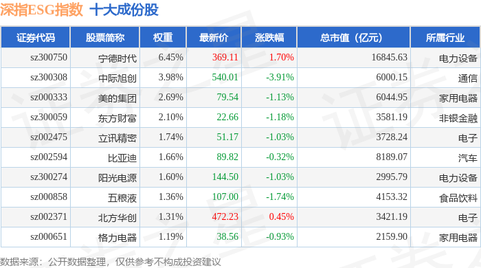 深指ESG(970026)指数十大成份股详情如下: