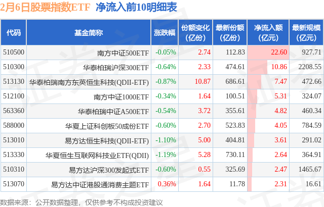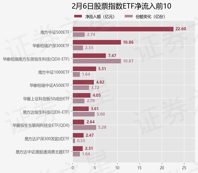 当日有239只股票指数ETF基金出现资金净流入,其中净流入排首位的是南方中证500ETF(510500),份额增加了2.74亿份,净流入额为22.6亿元。