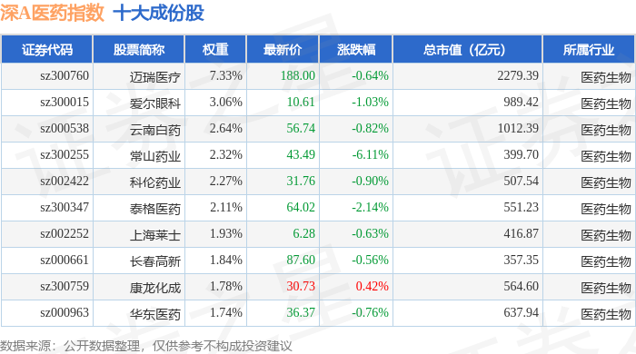 证券之星消息,2月12日,深A医药(399674)指数报收于1979.58点,跌0.64%,成交205.66亿元,换手率0.95%。当日该指数成份股中,上涨的有40家,爱迪特以15.44%的涨幅领涨,下跌的有178家,常山药业以6.11%的跌幅领跌。