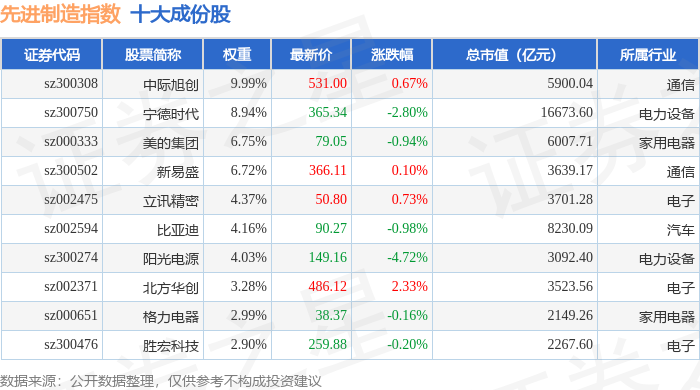 证券之星消息,2月13日,先进制造(399260)指数报收于3746.0点,跌1.04%,成交1266.47亿元,换手率1.18%。当日该指数成份股中,上涨的有12家,中航成飞以3.71%的涨幅领涨,下跌的有38家,天孚通信以5.58%的跌幅领跌。