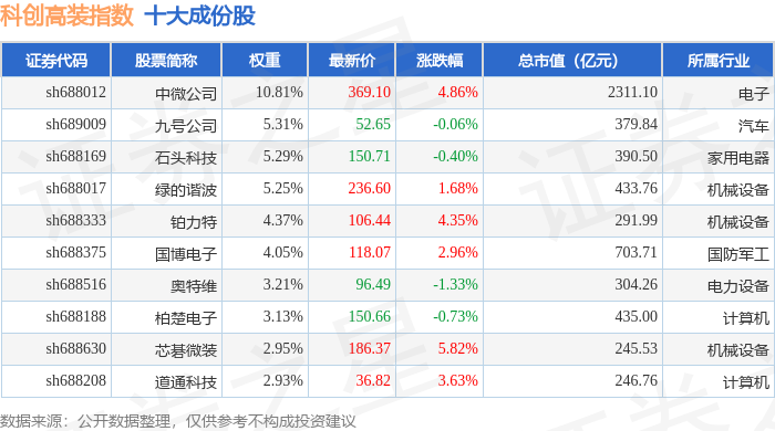 科创高装(000687)指数十大成份股详情如下: